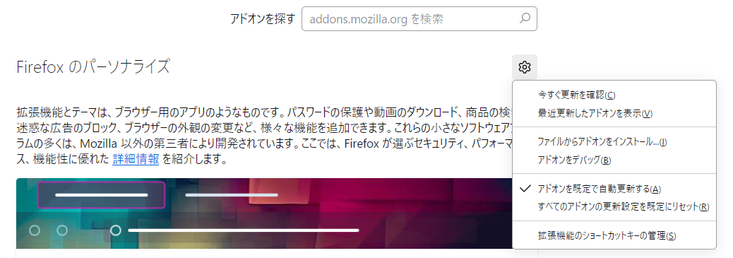 ※表示が出ない場合は「デベロッパー モード」をオンにしてください。