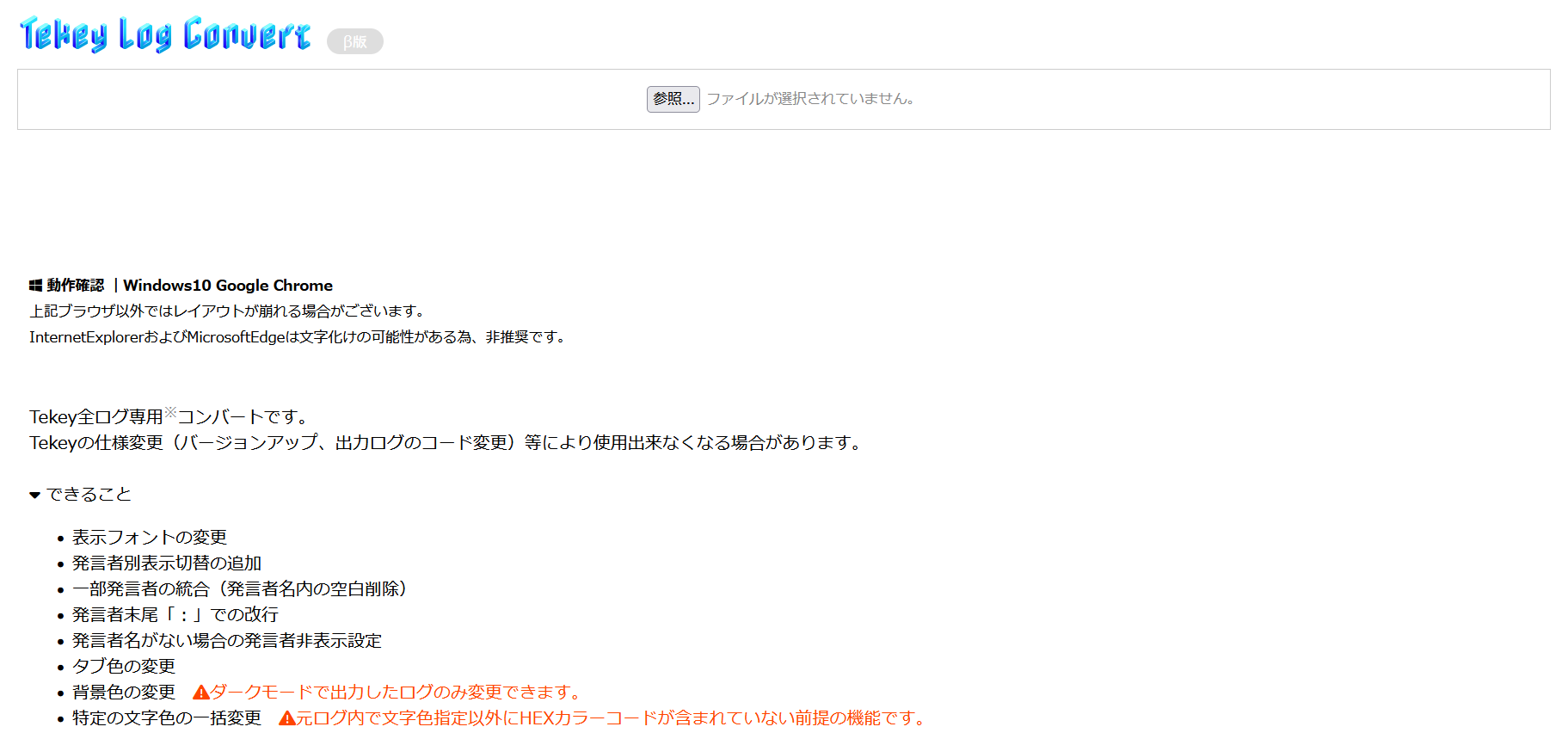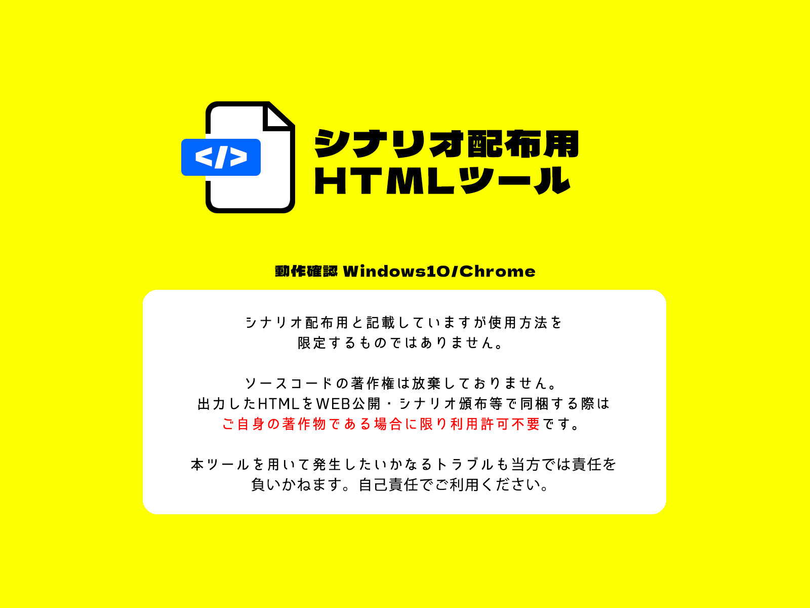シナリオ公開ページおよび頒布HTMLの動作確認はすべてWindows10,11/Google Chromeで実施しています。