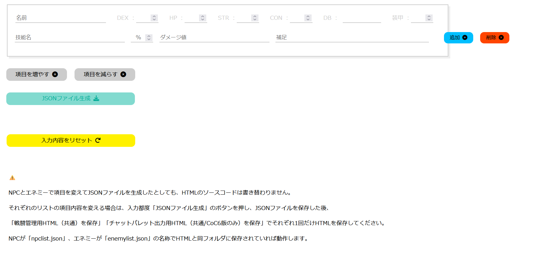 ただし、シナリオによってNPCの作成条件を設けている場合がございますので、シナリオごとのNPCに際する諸注意をご一読ください。