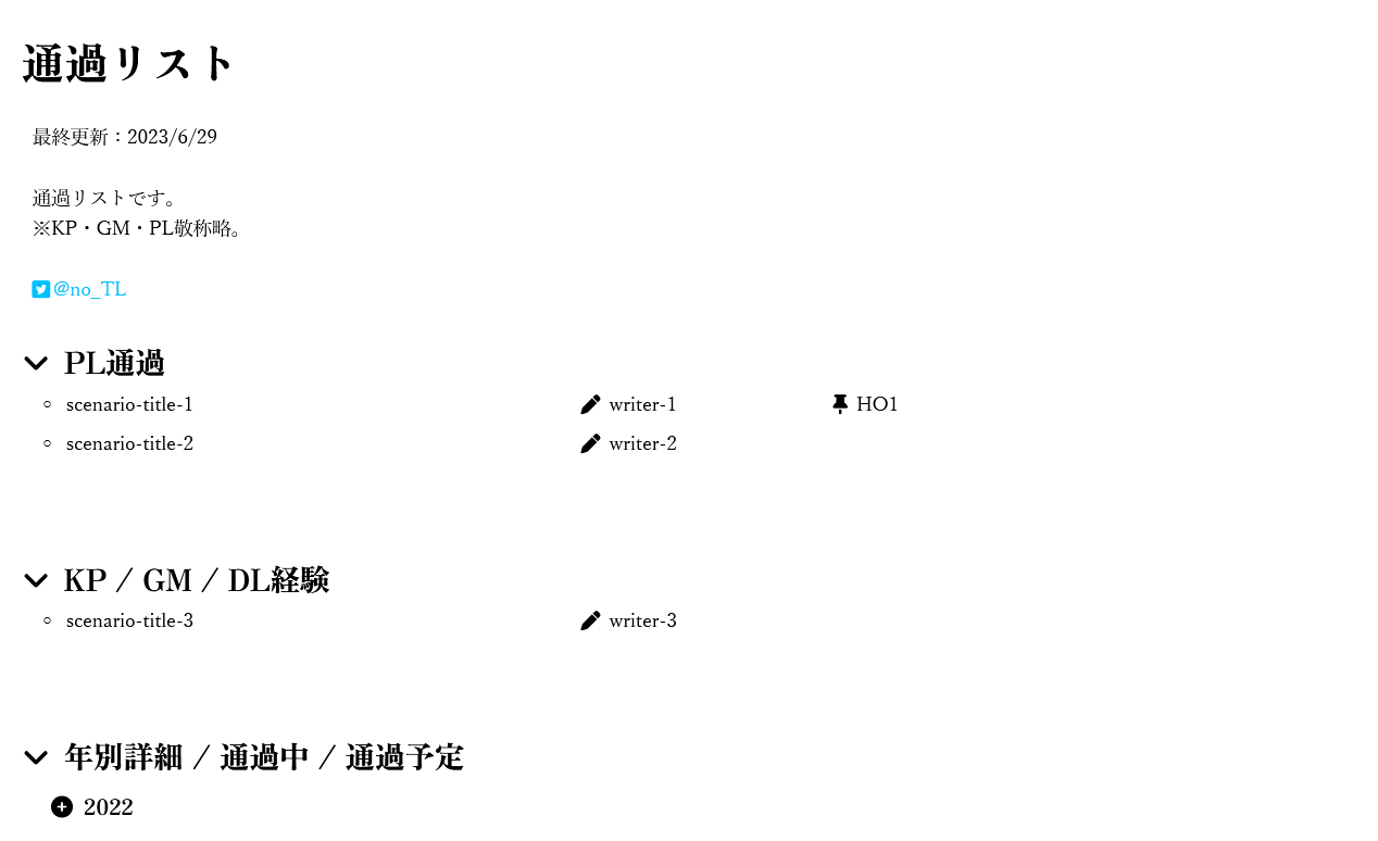 シナリオによっては参加PCがネタバレに繋がるものがございます。
